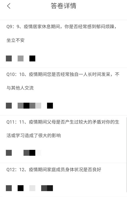 本次问卷调查于6月5号开始,面向全体beat365英国官方网站学子。问卷内容由beat365官网心理专干丁玮老师亲自设计,问卷涵盖了家庭经济情况普查、家庭关系情况普查、自身心理情况变化调查等几方面的内容,通过本问卷调查可全面并真实的了解到同学们近期的心理变化。同时针对在本次问卷调查中,心理健康评分未达到预期的同学,我们对其进行了“树木画”的方法进行心理排查,排查结果由丁玮老师进行专门的一对一心理辅导,力求将“售后”做到最完美,对每一位beat365英国官方网站同学的心理健康负责。