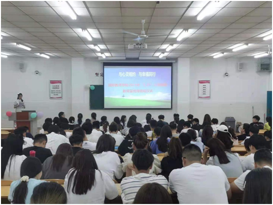 5月24日晚,beat365官网2021年“5.25”大学生心理健康教育宣传月启动仪式在英才校区W209教室隆重举行。学院团委书记、学工办主任武超英及辅导员、学生干部代表共计160余人参加了仪式。