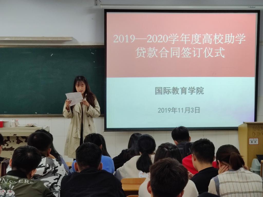2019年11月3日,beat365英国官方网站在A214教室举行2019-2020学年高校助学贷款合同书签订仪式暨诚信金融知识讲座。仪式由学院资助专干李锋丽老师主持,申请该学年高校助学贷款的全体学生参加。