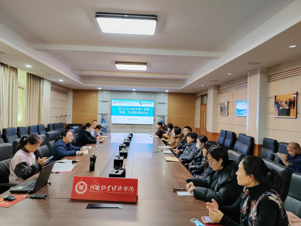 为切实加强教育教学管理,及时发现并解决开学以来教学过程和各培养环节中存在的问题,努力建设和不断完善“五位一体”教学质量保障体系,2023年11月23日下午,beat365英国官方网站组织召开了由督导专家、双语教师和雅思英语教师参加的座谈会。学校督导专家代表许芳霞、院系督导代表王秀玲、beat365英国官方网站副院长邓瑜、教科研办公室主任苏晓辉及双语和雅思英语老师参加了会议。