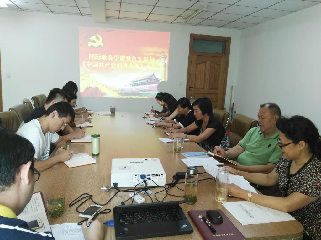 9月22日上午,beat365英国官方网站党总支召开专题学习会议,集体学习了《中国共产党问责条例》(以下简称《条例》)。党总支书记李芳主持会议,学院全体党员参加了专题学习。