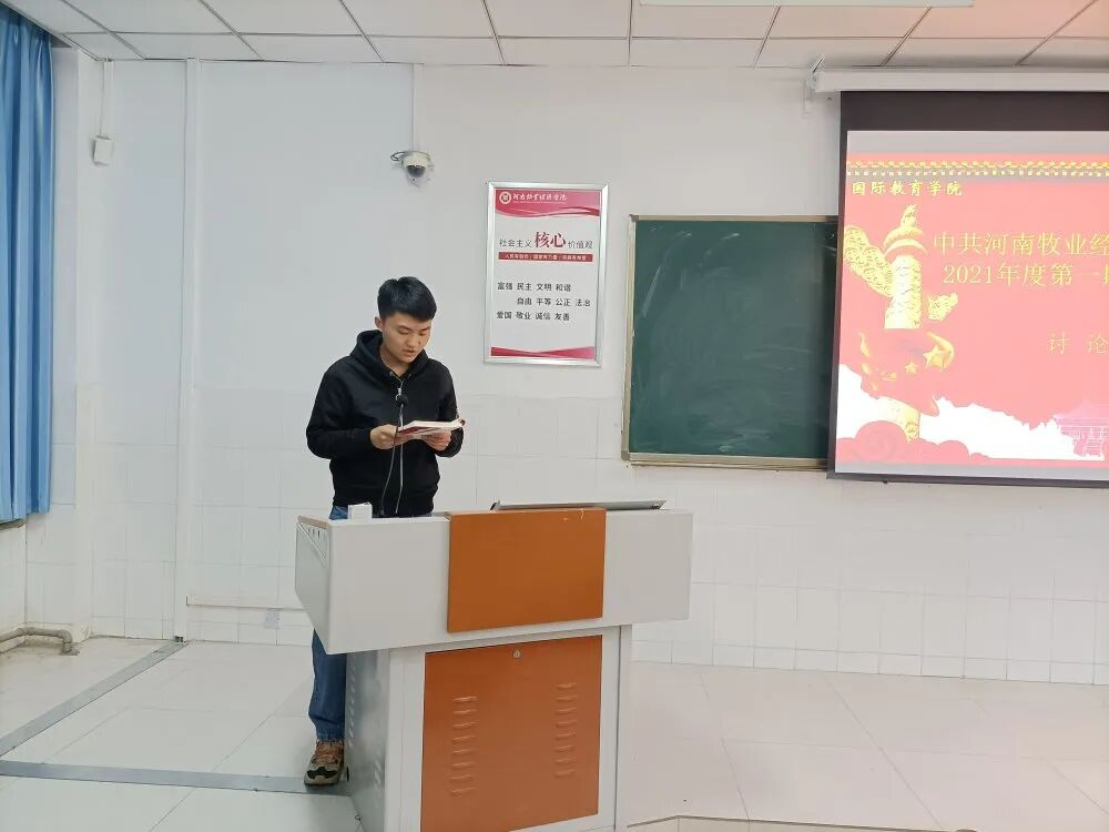 beat365英国官方网站于2021年4月12日晚在英才校区W205教室开展中共beat365英国官方网站委员会党校2021年度第一期发展对象培训班第一讲。本次培训内容为《党员发展对象》教材,由培训班学员组长李安煜主持。