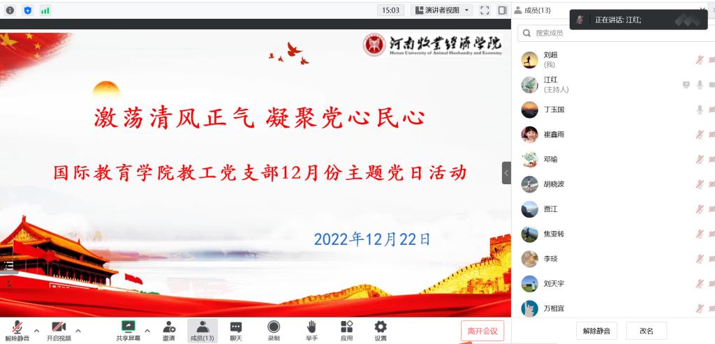 12月22日晚上,beat365英国官方网站教工党支部开展线上主题党日活动。教工支部全体党员参加活动,活动由党支部书记李江红同志主持