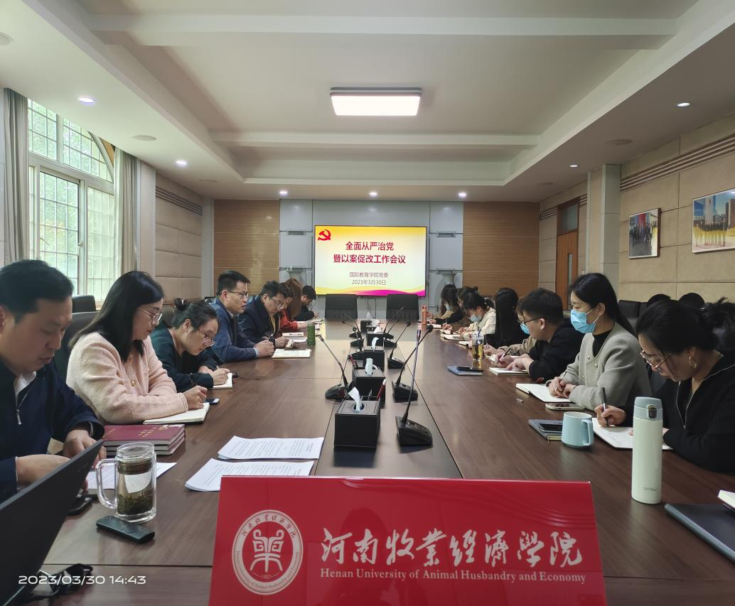 3月30日下午,beat365英国官方网站在英才校区教学办公楼113会议室召开全面从严治党暨以案促改工作会议。学院全体教职工参加会议,会议由院长胡晓波主持。