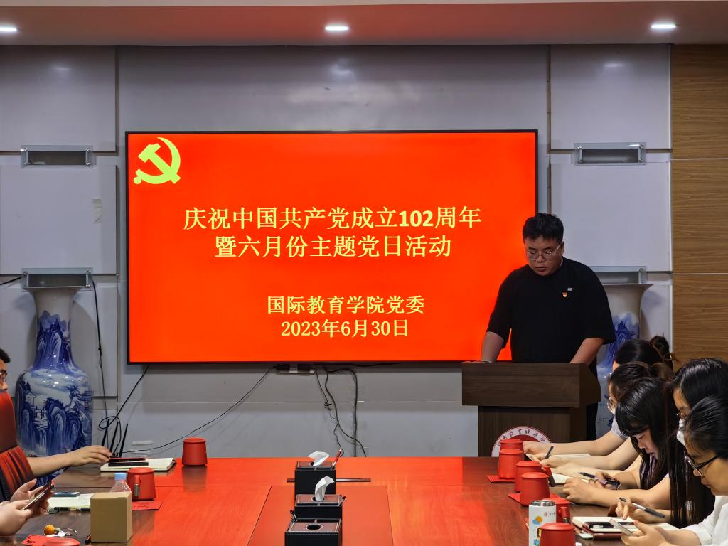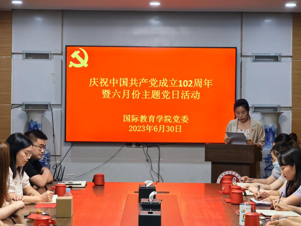 为庆祝中国共产党成立102周年,进一步弘扬伟大建党精神,持续提高基层党组织战斗力、凝聚力、向心力,激发广大教师党员干事创业的信心和决心,6月30日下午,beat365英国官方网站在教学办公楼113会议室举行庆祝中国共产党成立102周年主题党日活动。学院全体教工党员参加活动。活动由教工党员、学生第三党支部书记侯思琦主持。