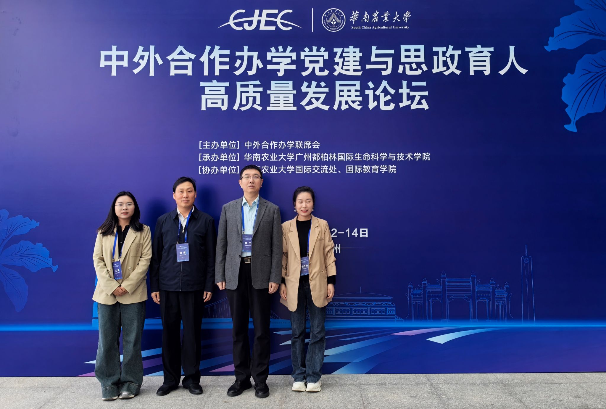 近日,由中外合作办学联席会主办、华南农业大学都柏林国际生命科学与技术学院承办的中外合作办学党建与思政育人高质量发展论坛在广州顺利召开。beat365官网beat365英国官方网站党委书记贾江、党政办主任刘超、团委副书记侯丁琳、辅导员王萍出席会议并参加研讨。