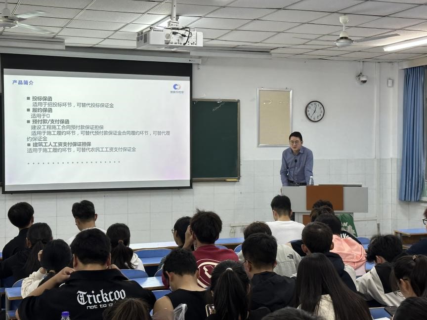 广东省诚盈投工程担保集团有限公司成立于2023年,注册资本金人民币8.8亿元,公司主要经营非融保函及各类担保业务,累计服务客户10000+,专注服务于住建、工程、铁路等多个领域,拥有丰富的专业风险管控人才,参与多项行业制度的政策研究。公司在全国设立两大中心,N+联络处。其中业务运营中心设置在广州市,业务营销中心设置在郑州市,服务全国客户。会上,广东省诚盈投工程担保集团陈经理就公司基本情况、业务范围、办公环境、招聘计划、薪资待遇等方面进行了详细介绍,并表示欢迎学院广大学子到公司实习参观。会后,部分毕业生也与陈经理进行了交流。