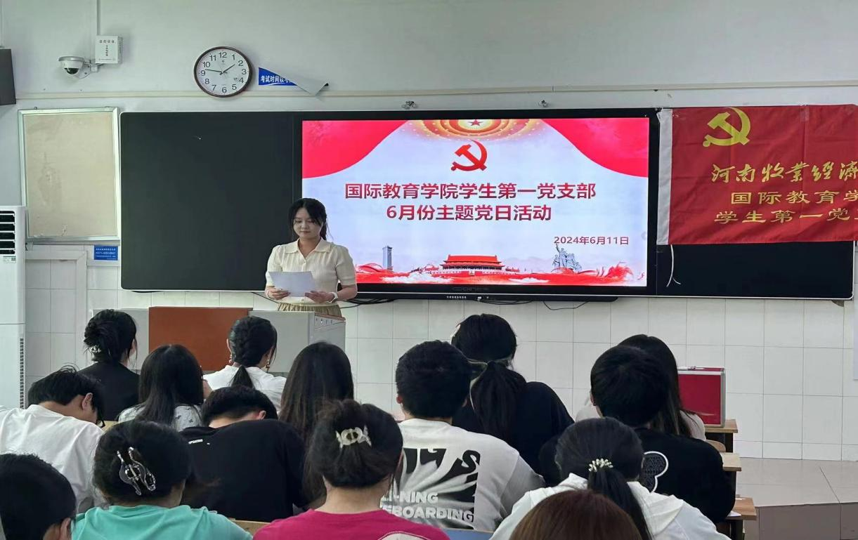 611日下午1点,beat365英国官方网站学生第一党支部在B107教室召开6月份主题党日活动,此次会议由支部书记侯丁琳主待,一支部全体学生党员参加。