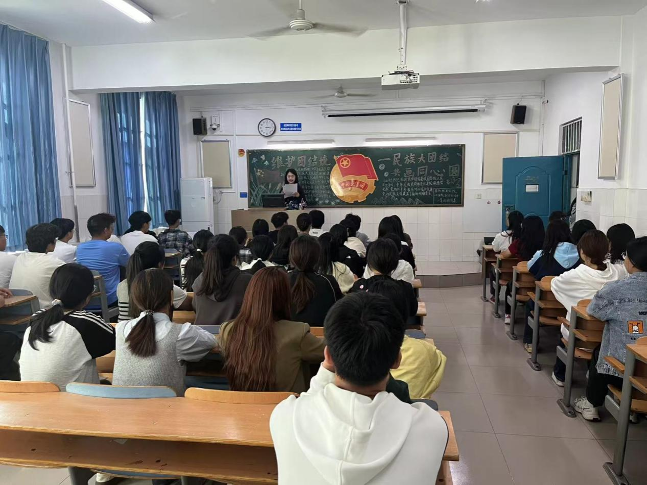 活动中,各班团支书,强调了民族团结、国家统一的重要性。鼓励青年学子要认真学习贯彻习近平总书记关于民族团结、国家统一的一系列重要论述,大力弘扬心系祖国,心系民族,团结一家亲,共画民族团结同心圆。