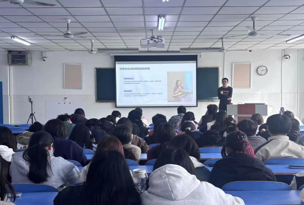 会上,汪维璞从自己的备赛经历出发,讲述了自己参加竞赛的全过程,其中重点分享了项目计划书撰写、团队组建、项目选择等方面的注意事项。常舒畅从三创赛背景与介绍、参赛流程与方式、创新创意在竞赛中的重要性、创业项目在比赛中的价值体现、参赛准备与策略建议等方面进行了系统讲解。自由提问环节,参赛同学围绕从自己的专业情况出发,就大一新生如何合理组建团队,如何选择参赛项目等问题提出疑问,汪维濮和常舒畅做出了细致解答,并鼓励新生同学要勇于尝试,挑战自我。