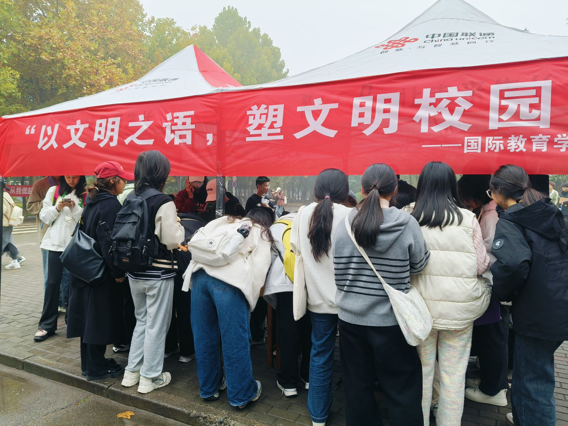 为了营造文明、和谐的校园环境,引导学生认识到文明行为的重要性,树立正确的价值观和行为准则,提升学生的文明素养和文明意识,养成良好的行为习惯。beat365英国官方网站生活权益部于11月13日在红色花蕊处,面向英才校区全体学生开展了“以文明之语,塑文明校园”文明标语活动。