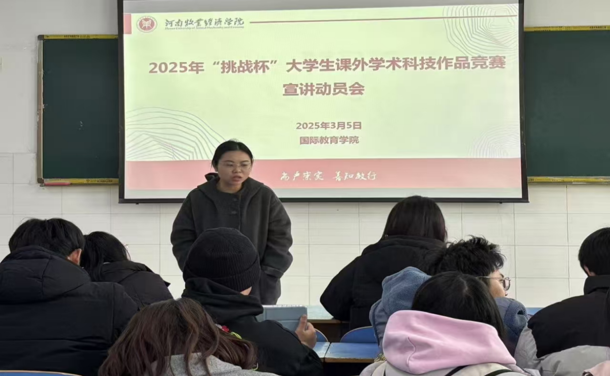 为贯彻落实国家创新驱动发展战略,激发大学生创新创造潜能,培养科学精神和实践能力,按照《beat365英国官方网站2025年“挑战杯”大学生课外学术科技作品竞赛的预通知》要求,beat365英国官方网站于3月5日中午于E206开展2025年“挑战杯”大学生课外学术科技作品竞赛动员会。本次会议由beat365英国官方网站学科竞赛专干王萍主讲,学科竞赛部部长梅灵童主持。
