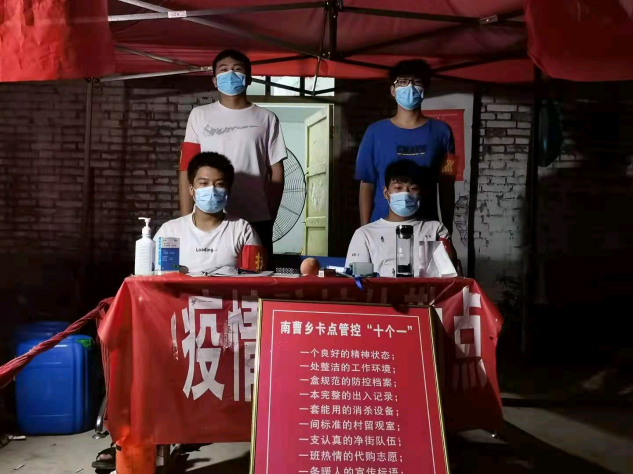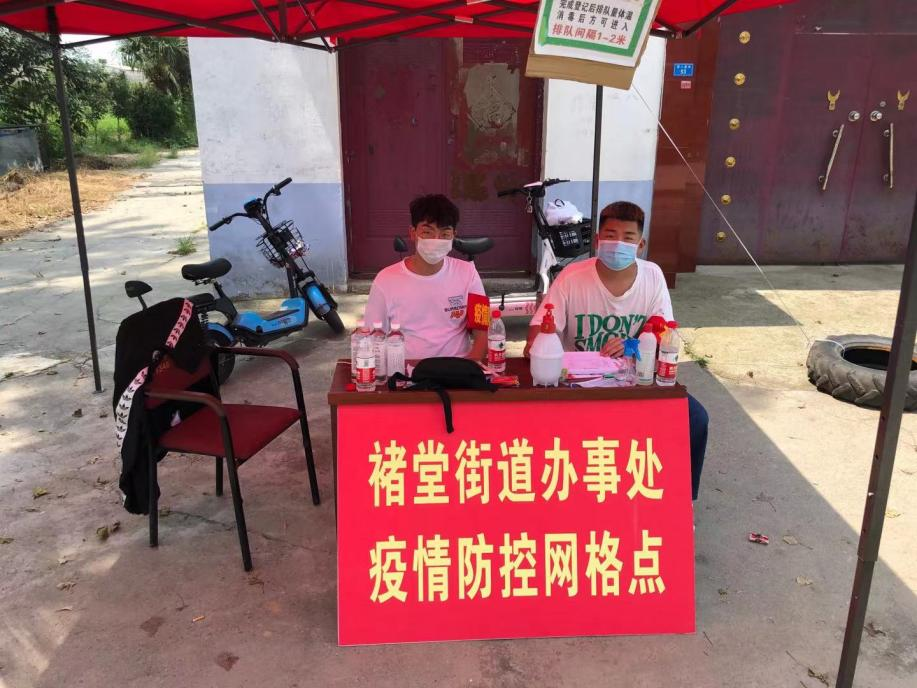 刘孜坤同学于8月10日至20日在褚堂乡镇街道办事处担任疫情防控网络点负责人,负责登记来往车辆行人,检查健康码和行程码。刘孜坤同学说道:“工作环境很炎热,但是乡镇村民和干部很热心,无偿提供各种必需物品;疫情防控不是个别人或一些人的工作,需要全社会共同努力!”