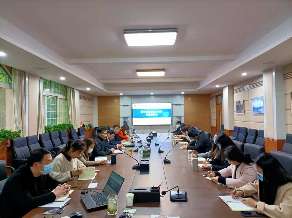 根据学校《关于开展第三轮教育思想观念大讨论的通知》要求及beat365官网工作安排,11月4日上午,beat365英国官方网站在英才教学办公楼113会议室召开教育思想观念大讨论专题研讨会,副校长杨宝进出席座谈会,学院全体人员参加座谈会,会议由院长胡晓波主持。