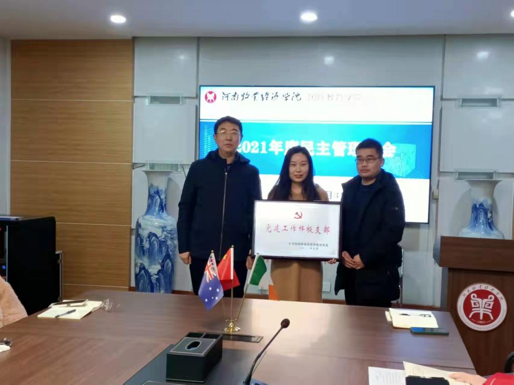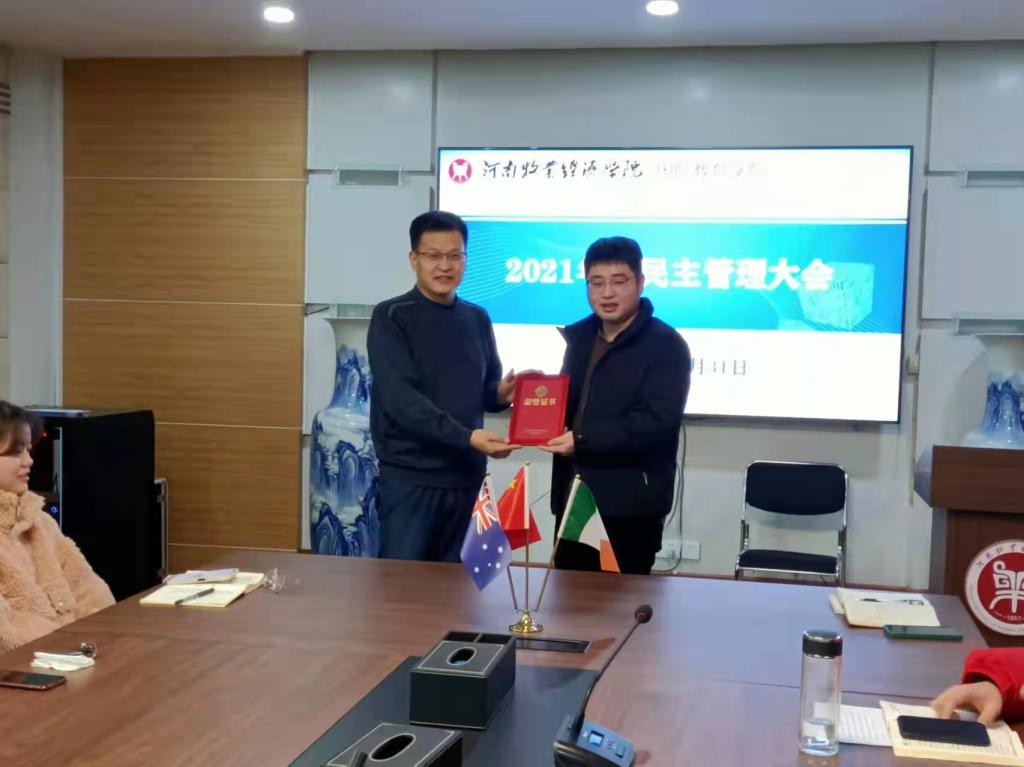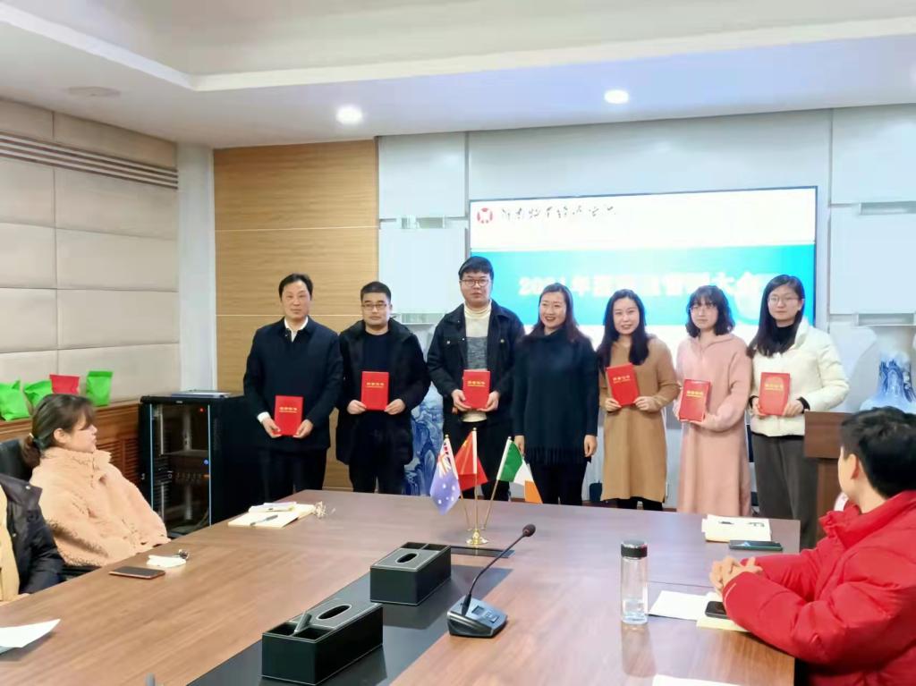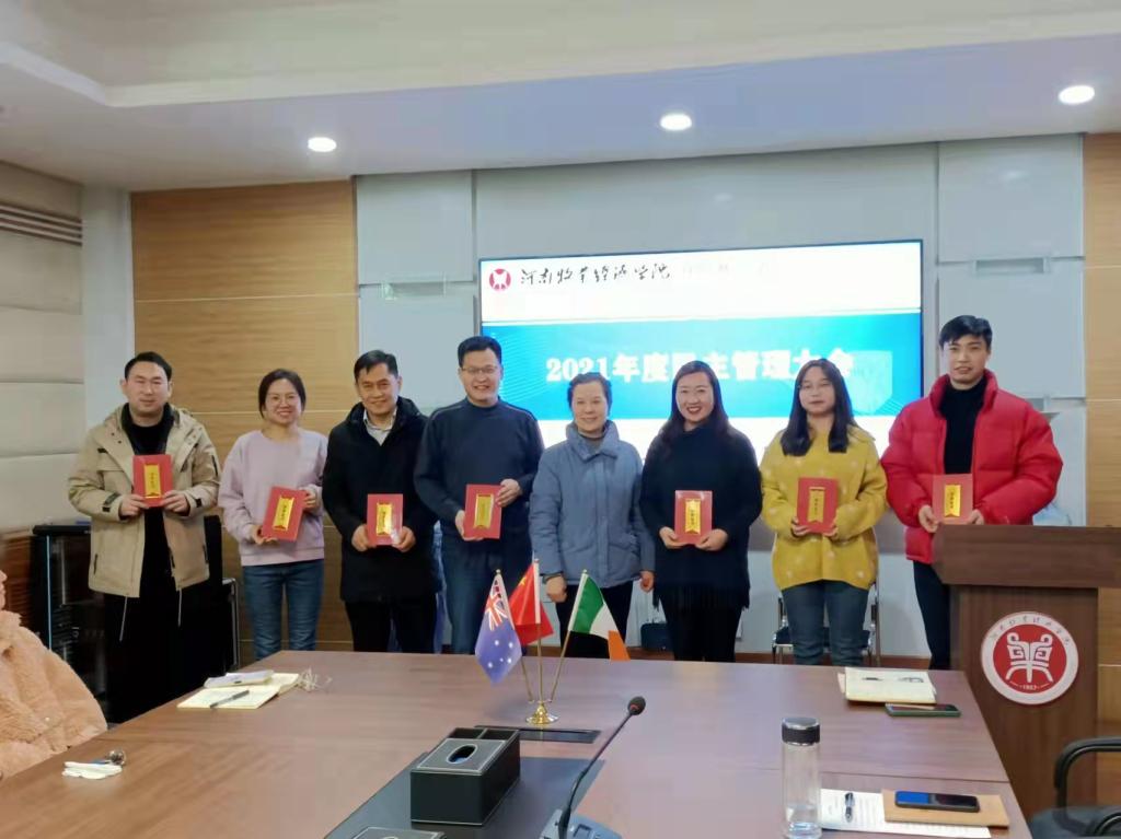 会议伊始,胡晓波院长代表学院领导班子作《beat365英国官方网站2021年度工作报告》,胡晓波首先结合过去学院过去十年发展历程,强调在今后的中外合作办学过程中要把握好时与势,厚植好根与魂,统筹好破与立,建设好高质量的中外合作办学体系。而后,胡院长从组织结构、工作成效、实施内涵建设和存在问题等方面全面回顾了beat365官网2021年各项工作的完成情况,肯定了过去一年中学院全体教职工齐心团结,在校党委的领导下取得了多项成绩。院党委副书记、分工会副主席李江红做了《beat365英国官方网站2021年度分工会工作报告》,对分工会年度工作进行了全面总结,并对今后分工会工作的开展提出了新要求。学院党政办公室主任刘超做了《beat365英国官方网站2021年度经费使用报告》,向全体教职工公布学院2021年度全部经费的使用情况。会上,学院结合全年教职工的个人奖项获取情况,副院长何丽娜宣读获奖集体及代表,学院领导对获奖老师分别进行了颁奖。