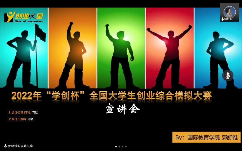 为有序推进beat365官网2022年“学创杯”全国大学生创业综合模拟大赛beat365英国官方网站选拔赛,帮助学生了解比赛的操作流程,激发学生参加比赛热情,以达到提升专业能力的目的。beat365英国官方网站于4月4日对本次有意愿参加比赛的同学进行了线上宣讲会,本次宣讲会主要依托腾讯会议平台,学院学科竞赛负责老师刘天宇主持。
