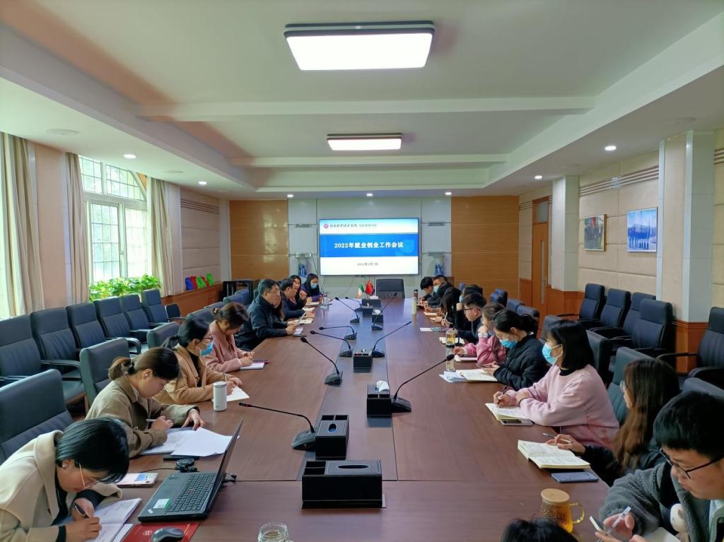 就业是民生之本,为更好的推动能力作风建设年活动,提高beat365官网2022届毕业生就业工作站位,督促日后的工作提质增效,抓住即将到来的高校毕业生就业黄金时期,3月7日国际教育学院在教学办公楼110会议室召开2022年就业创业工作会议,出席会议的有学院党委书记贾江、副书记李江红,参加会议的有科级干部和全体辅导员,会议由副书记李江红主持。