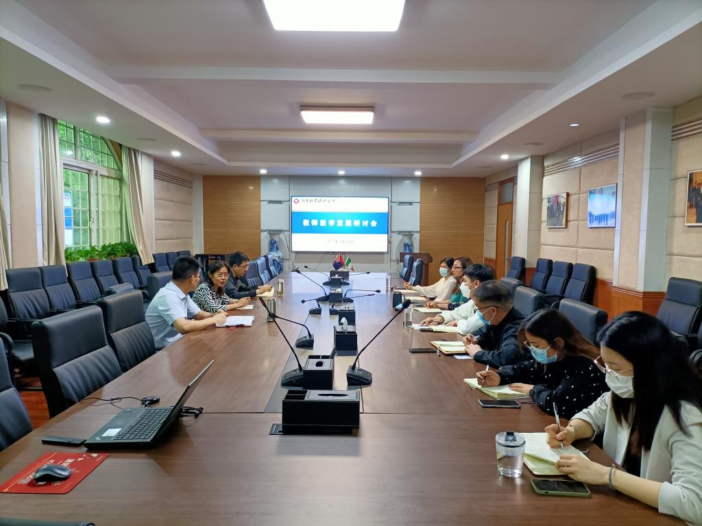 教师是学校发展的第一生产力和核心竞争力。此次调研座谈,双方就加强学院双语师资团队建设交流碰撞出了许多好的想法。下一步,学院将加强与学校教师发展中心的沟通和联系,结合中外合作办学实际,在双语师资培训交流、师生英语能力提升、外籍教师融入日常教学研讨等方面下功夫,以开阔的思路、开放的视野积极探寻解决中外合作办学过程中遇到的问题和难点,为提升学校中外合作办学影响力和助推学校“十四五”建设贡献力量。