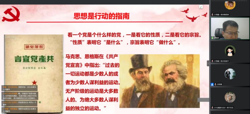 为进一步端正广大入党积极分子的入党动机,加强对入党积极分子的党性教育,增强党性观念,2022年10月9日晚,beat365英国官方网站通过腾讯会议形式开展了2022年第二期入党积极分子培训班第二讲。此次党课围绕“党的指导思想”主题展开,由学院院长胡晓波主讲。