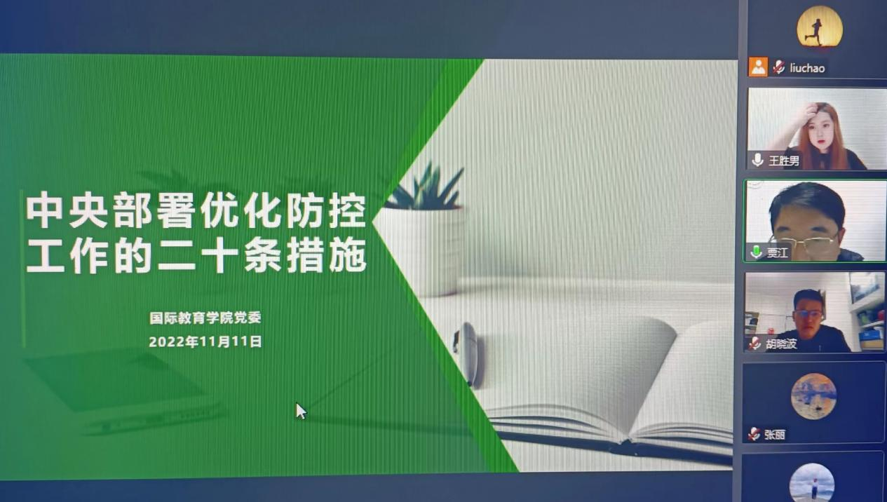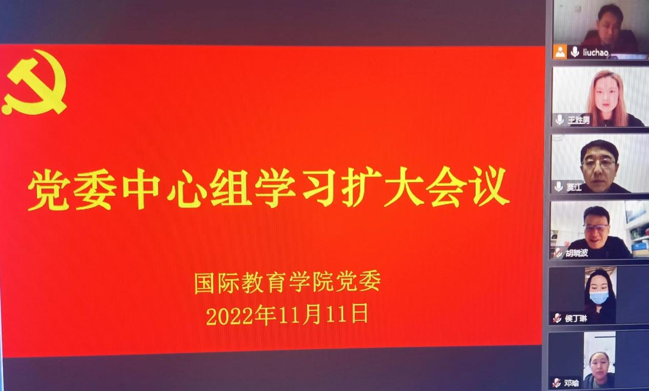 11月11日,国际教育学院党委理论学习中心组召开线上学习扩大会议,专题学习11月10日召开的中共中央政治局常务委员会会议重要精神。学院党委委员、师生党支部书记参加学习。会议由学院党委书记贾江主持。