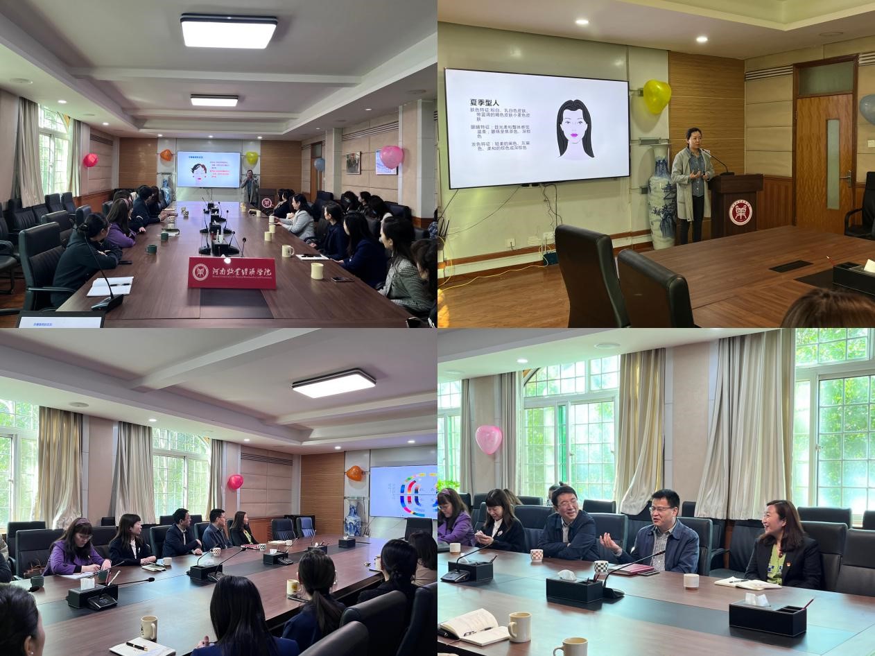 三月的蓓蕾绽放早春的第一缕殷红,桃花盛开,梨花飞舞,为庆祝第113个“三八”国际妇女节,体现对女性的关爱与尊重,由校工会女工委主办,beat365英国官方网站分工会承办的“彰显魅力,美丽人生”——女性商务穿搭技巧分享活动于3月13日上午9时在英才教学办公楼113举行,活动由刘雪琳老师主讲,校团委,校医院、校心理中心和其他各兄弟学院领导参加,李江红书记主持。