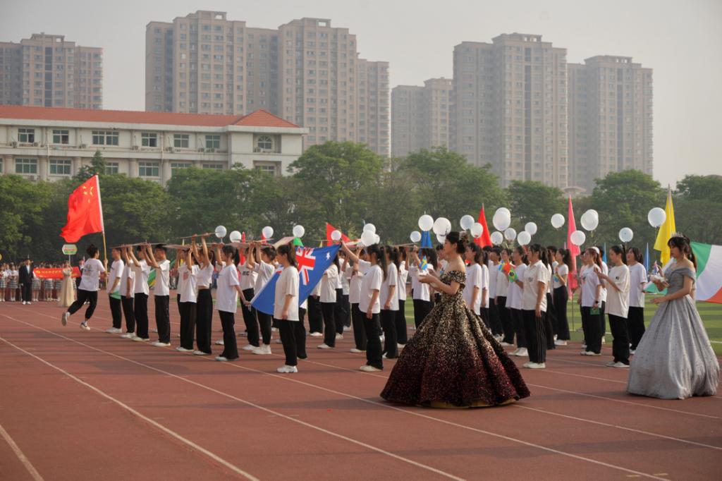 4月20日上午,beat365英国官方网站英才校区的田径场上彩旗飘扬,各队伍方阵整装待发,观众席气氛高涨、欢呼不断。东日旭阳撒向绿茵草坪,身着军装的国旗护卫队、校旗队,充满激情的彩旗队,以及各学院、书院别具风格特色的代表方阵依次入场。只见beat365英国官方网站代表方阵面带骄人的微笑,迎着清晨的光辉在主席台下站定,同学们用力挥舞五星红旗,高扬各国国旗,将beat365英国官方网站中外融通,交流合作的办学理念充分展现出来。红旗飘扬,五彩斑斓的气球缓缓上升,白色和平鸽盘旋在绿茵场上方,引来观众席一阵热烈欢呼。随着最后一支方阵归入队伍,学校领导发表本次运动会的激昂致辞,田径比赛正式开始!