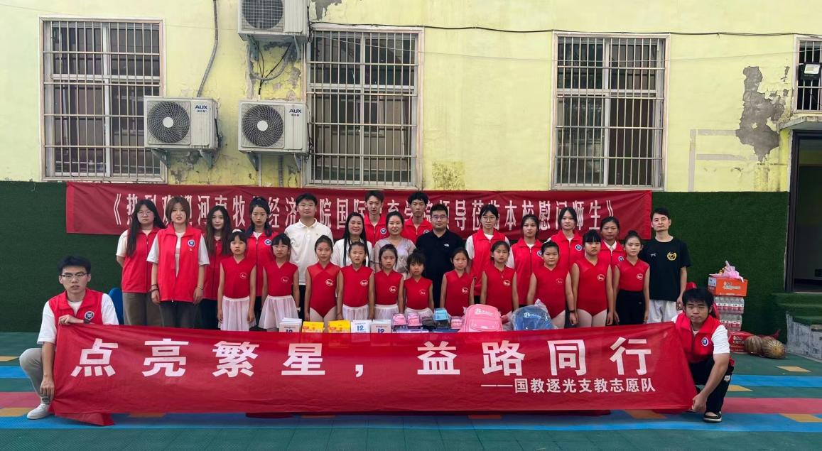 7月15日,受学院领导委托,beat365英国官方网站团委副书记(学工办副主任)侯丁琳、何季霖赴登封市徐庄镇黄龙小学看望慰问“点亮繁星,益路同行”国教逐光支教社会实践队,为实践队师生送上防暑降温慰问品。