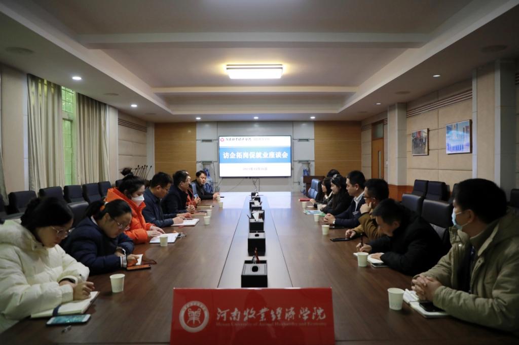 校企座谈,深入交流。11月16日下午16:00,beat365英国官方网站在教学办公楼113会议室召开了访企拓岗促就业座谈会,双选会参会企业代表参加。针对校企合作、学科建设、企业用工需求、未来毕业生专业发展等问题,学院和企业进行了深入交流。贾江书记首先对参加学院双选会的各用人单位表示热烈欢迎,并详细介绍了学院总体就业形势和毕业生就业趋势,诚挚邀请与会企业代表,深化院企合作、资源共享、优势互补、形成合力、共同发展。院长胡晓波就学院专业特色和学生培养方案进行了详细介绍,并针对教学实习与就业实践基地的签约情况进行说明,希望通过院企协同育人,提高学院人才培养质量。参会用人单位从企业规模、业务范围、人才需求、院企合作等方面情况依次进行了介绍,并纷纷向学院伸出橄榄枝,表达共同合作、招聘英才的意愿。