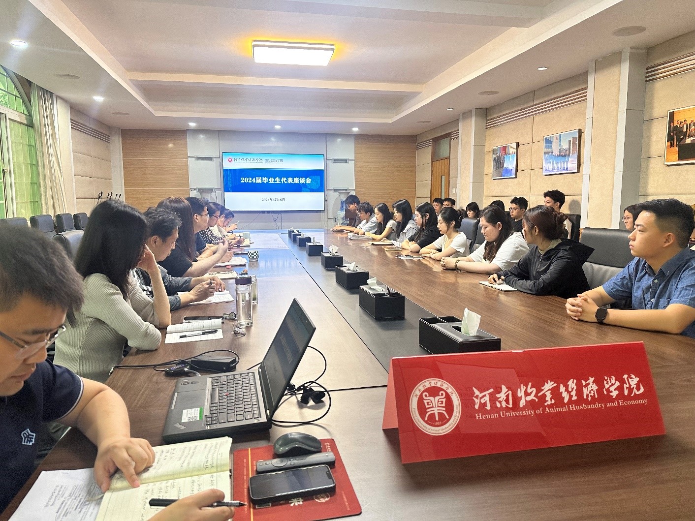 为深化学院与毕业生的沟通交流,听取毕业生们对学院发展的建议,5月16日上午,beat365英国官方网站在教学办公楼113会议室召开2024届毕业生代表座谈会。学院领导班子成员、科级干部及20名毕业生代表参与座谈。会议由院党委副书记李江红主持。
