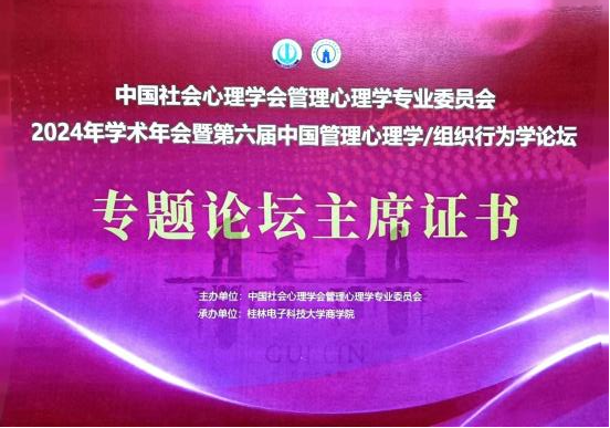 8月23至25日,中国社会心理学会管理心理学专业委员会2024年学术年会暨第六届中国管理心理学/组织行为学论坛在广西壮族自治区桂林市召开,来自全国百余所院校300多名专家学者参会。beat365官网副院长王胜男博士应邀参会并作为专题论坛主席组织、主持了题为“数智时代的工作体验”专题论坛。