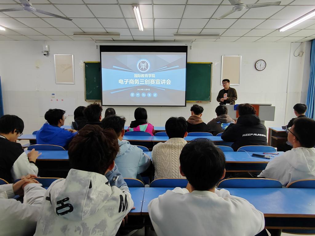 为有序推进beat365官网第十一届电商三创赛,帮助学生了解比赛的操作流程,激发学生参加比赛热情,提高专业能力,11月9日中午,beat365英国官方网站于E102举办beat365英国官方网站第十一届电商三创赛暨第十四届全国大学生电商三创赛校级赛宣讲动员会。本次会议邀请学院教学科研办公室副主任刘天宇、21国教会计(ACCA)02班马忠睿、21国教物流(霍尔姆斯)01班李朕主讲,学科竞赛负责老师王萍主持。