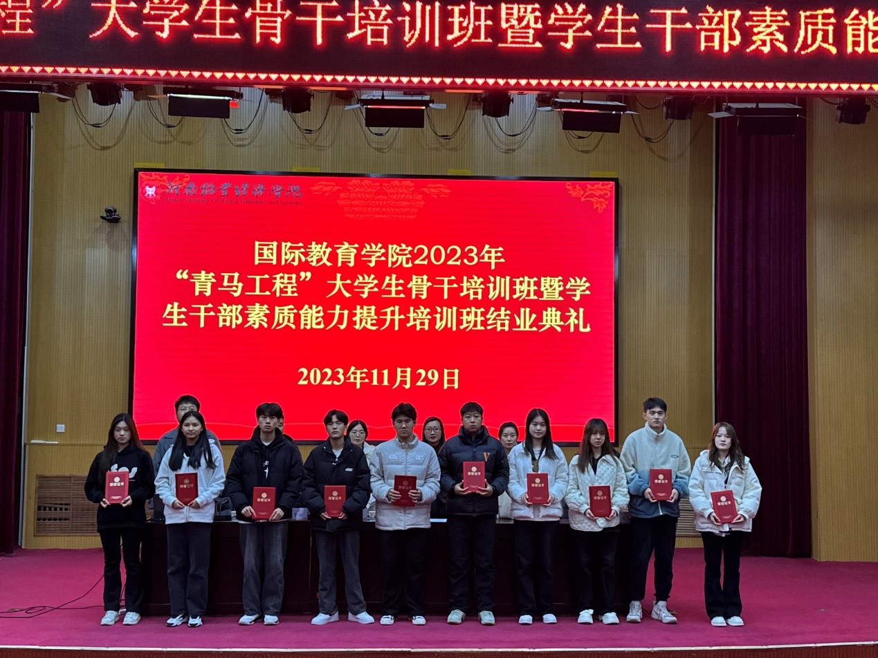 1129日,beat365英国官方网站在学术报告厅举行了“beat365英国官方网站2023年 “青马工程”大学生骨干培训班暨学生干部素质能力提升培训班结业典礼。院党委副书记李江红、院团委书记张丽、院团委副书记侯丁琳、何季霖,学生党支部书记滑斌和侯思琦以及本期培训班全体学员参加了结业典礼,典礼由何季霖主持。
