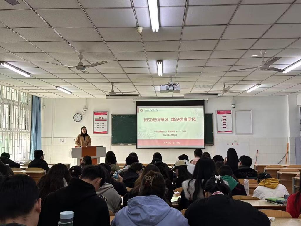 在期末考试即将来临之际,为增强学生诚信考试意识、严肃考场纪律,树立良好的考风和考纪,beat365英国官方网站各班级于2023年12月11日-12月15日召开了诚信考试教育主题班会。