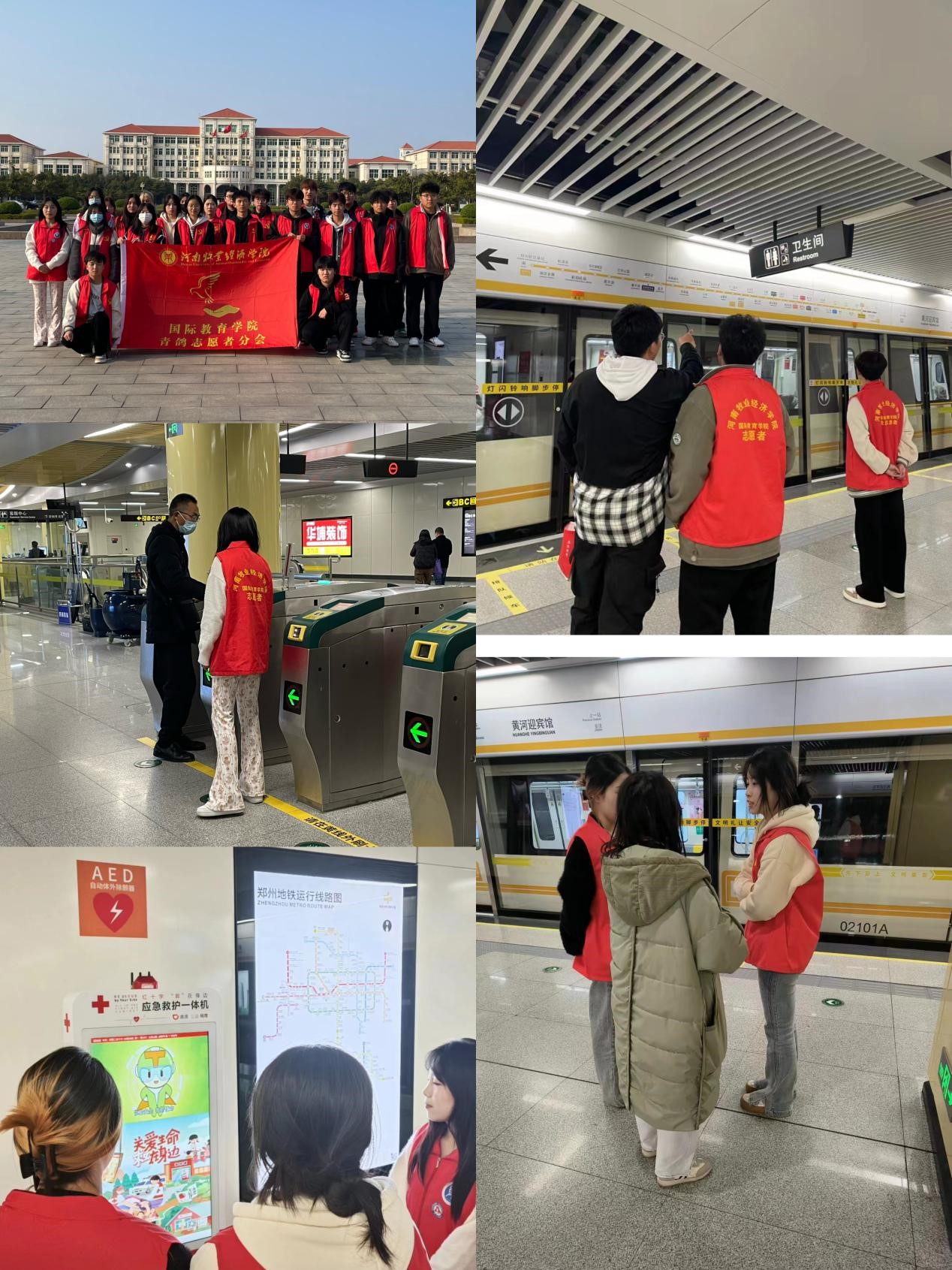 活动由beat365英国官方网站志愿者联系黄河迎宾馆的地铁工作人员共同分配工作,志愿者们首先学习地铁安全知识,然后通过志愿者的服务,在地铁站内为乘客提供指引,告知乘客站点信息、换乘路线、出口方向。帮助乘客解答关于地铁线路、票价、运营时间等方面的问题,能够在车站、列车上为广大乘客提供各类信息咨询、引导、助力等服务,让乘客在地铁出行中感受到更多的关爱和温暖。