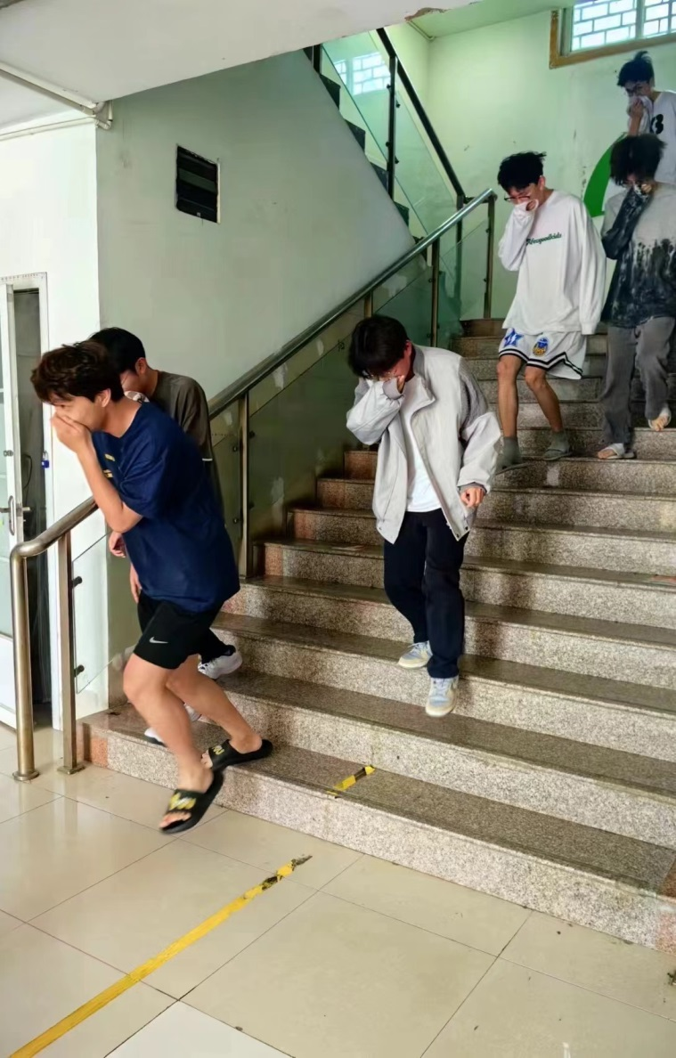 活动开始前,一站式学生社区驻楼辅导员老师对本次消防演练的内容、流程、要求以及注意事项进行了详细地讲解,并着重强调了消防安全应急疏散演练的重要性以及疏散路线等事项。随着警报的响起,消防安全演练活动正式开始。学生楼长、层长沉着冷静地指挥学生有序撤离宿舍,沿指定路线低着头,弯着腰,用湿毛巾捂住口鼻迅速下楼。不到3分钟,同学们就按照疏散线路从就近通道口迅速、有序、安全地撤离了宿舍楼区域,到达了宿舍门前空旷处集合,随后,老师们迅速整理队伍,清点学生人数,确保无一人遗漏。