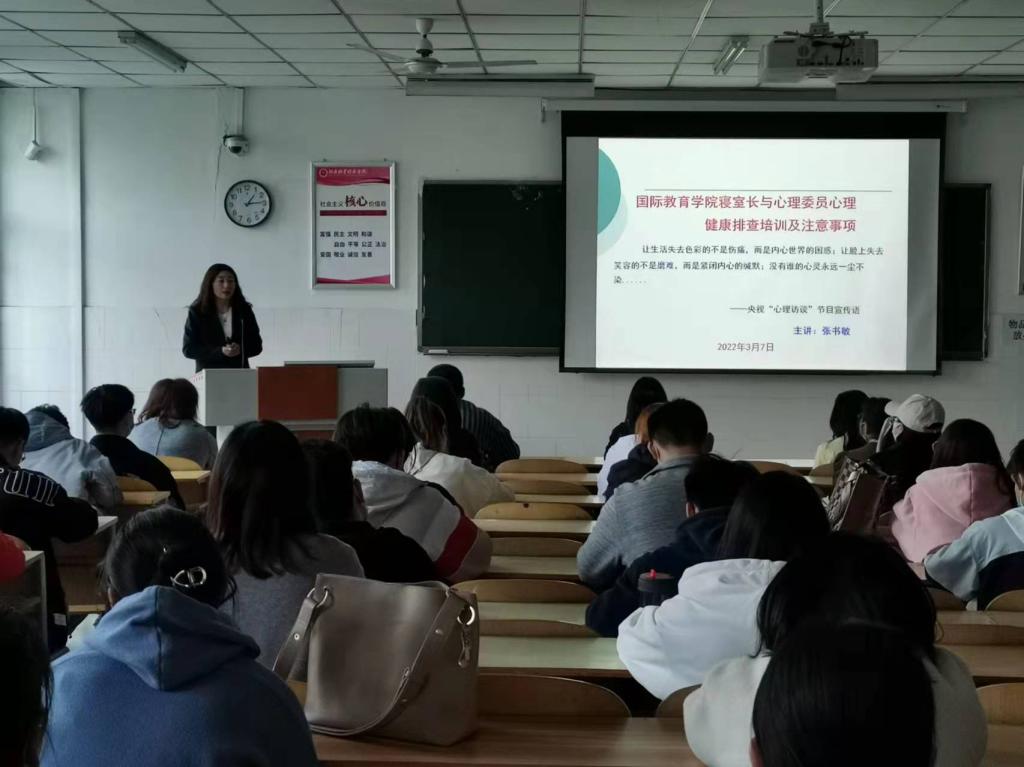 为充分调动和发挥班级心理委员、宿舍长在心理健康教育工作中的积极性和主动性,进一步强化学生心理信息员队伍建设,3月7日、9日中午,beat365英国官方网站分两批次组织全体2021级心理委员、宿舍长开展心理健康教育专题培训。此次培训由校心理健康教育中心张书敏老师主讲。