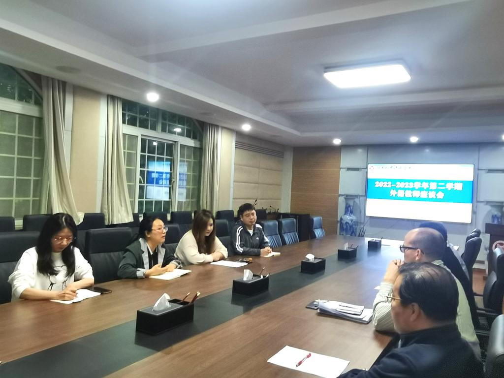 为切实加强教育教学管理,落实教学管理内容,规范外籍教师日常行为,4月27日晚,beat365英国官方网站组织召开了2022-2023学年第二学期外籍教师座谈会。参加会议的人员有副院长邓瑜、副院长王胜男,教学科研办公室主任苏晓辉、副主任刘天宇及外籍教师Thomas、Adam、Jafy、Dan四位外籍教师。会议由刘天宇主持。