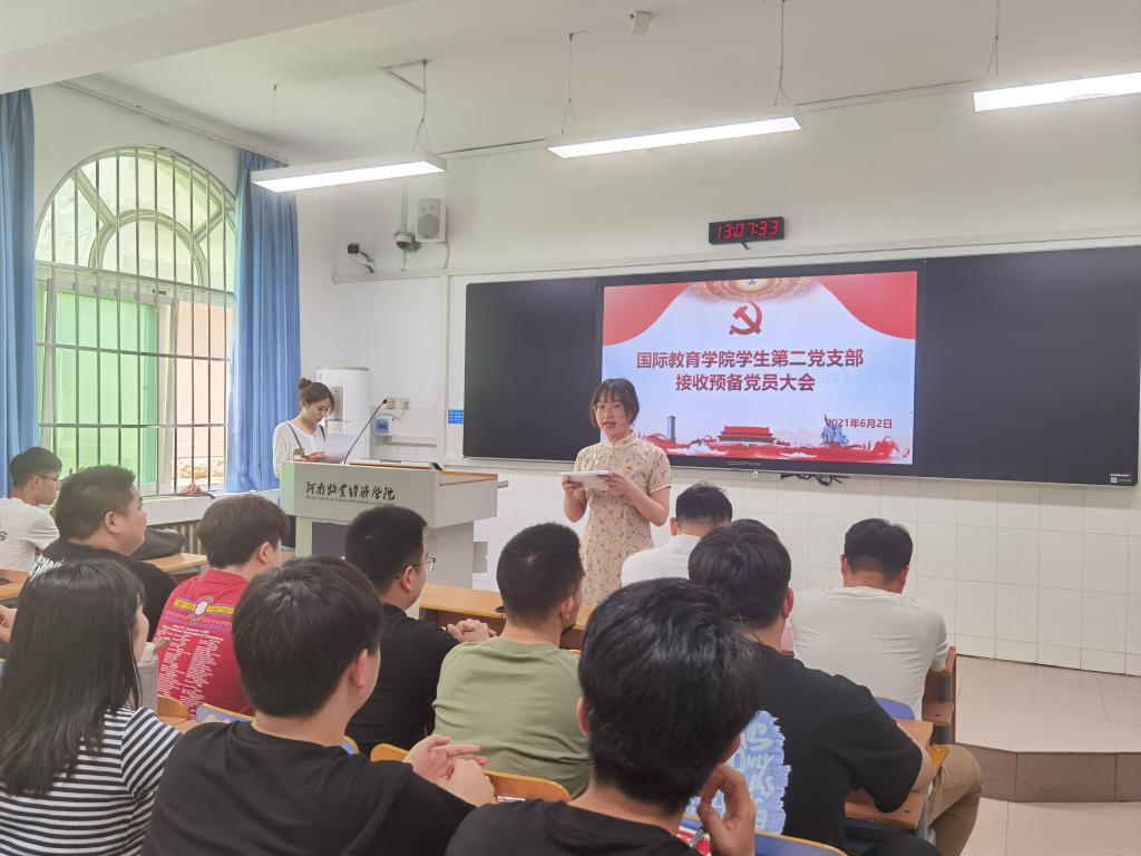 2021年6月2日中午12:30, beat365英国官方网站于教学楼A104召开beat365英国官方网站学生第二党支部接受预备党员大会。参加本次会议的有学生第二党支部书记姬哲、党小组组长刘天宇和组织委员侯思琦。