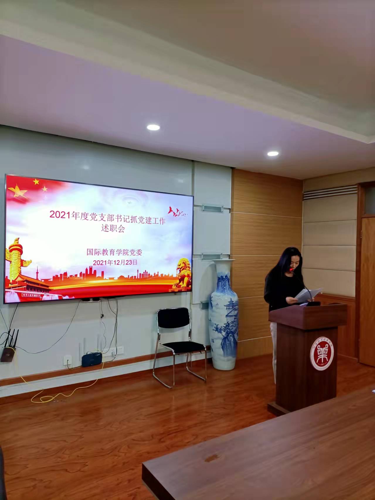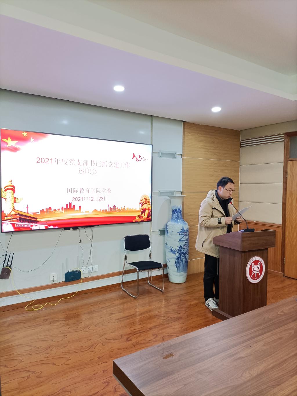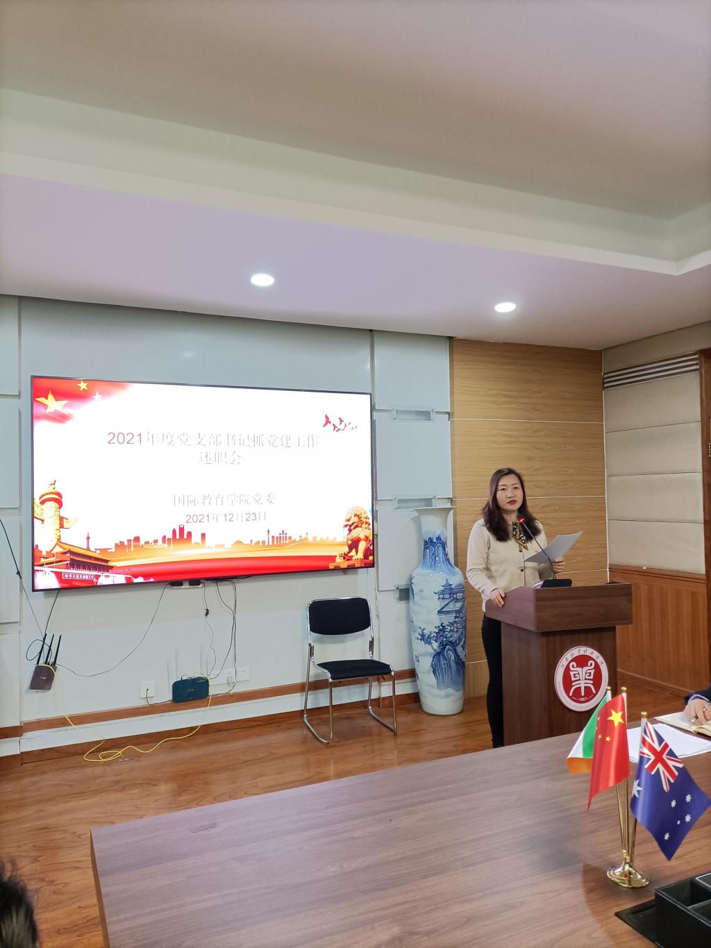 12月23日上午,beat365英国官方网站在教学办公楼113会议室召开2021年度党支部书记抓党建工作述职评议会。学院全体教工党员、部分学生党员代表参加会议。会议由院党委书记贾江主持。