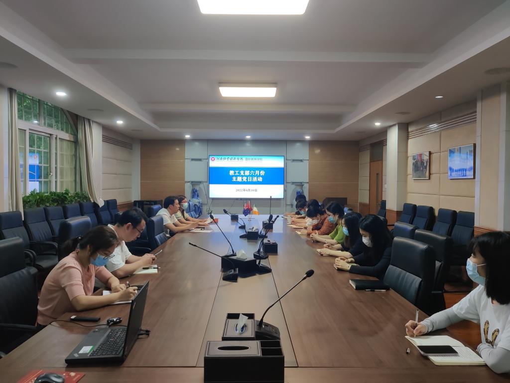6月10日上午,beat365英国官方网站教工党支部在英才校区教学办公楼113会议室开展六月份主题党日活动,支部全体党员参加会议,教工党支部书记李江红主持。
