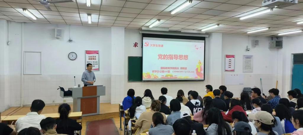为进一步端正广大入党积极分子的入党动机,切实做好入党积极分子的培训教育工作,加深入党积极分子对党的基本知识的学习和掌握,3月28日晚,beat365英国官方网站2023年第一期入党积极分子培训班第二讲《党的指导思想》专题党课在英才校区W210教室举行。本次党课由学院院长胡晓波主讲。
