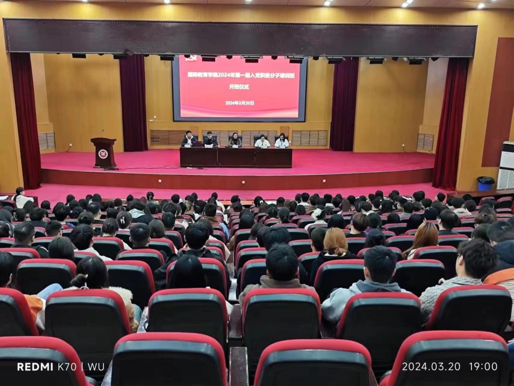 为深入学习习近平新时代中国特色社会主义思想,切实做好新时代党员教育培训工作,提升党员发展质量,3月20日晚,beat365英国官方网站在英才校区学术报告厅举行了2024年第一期入党积极分子培训班开班仪式。院党委副书记李江红,团委副书记侯丁琳、何季霖,学生党支部书记滑斌、侯思琦及本期入党积极分子培训班全体成员参加开班仪式。仪式由侯丁琳主持。