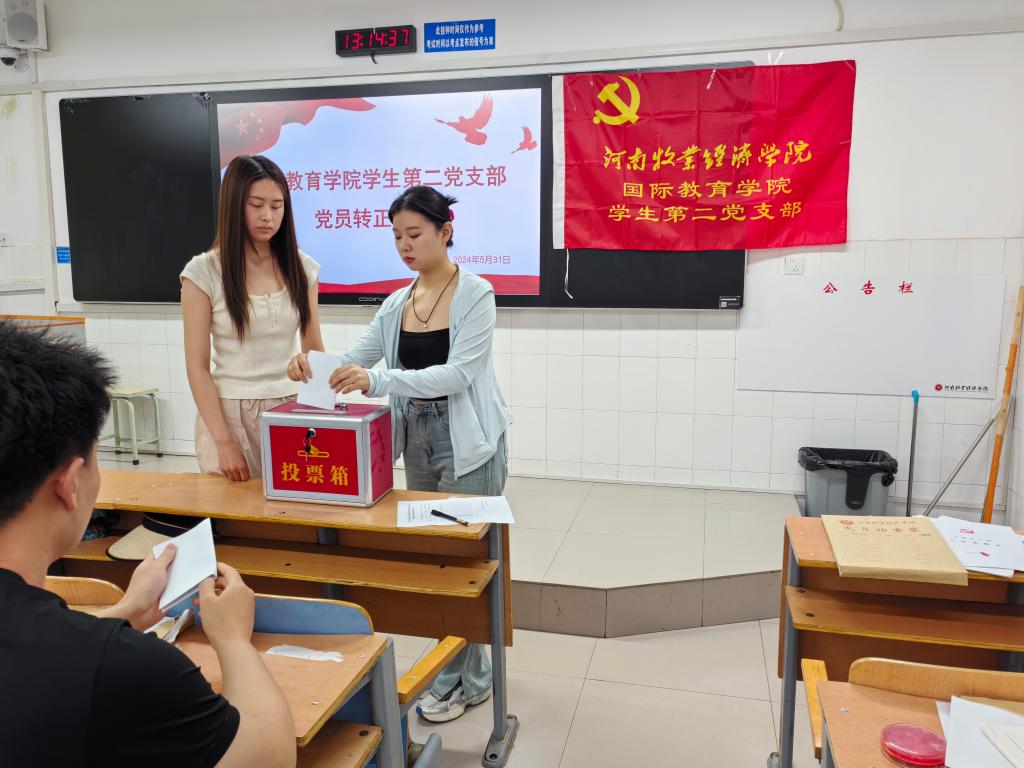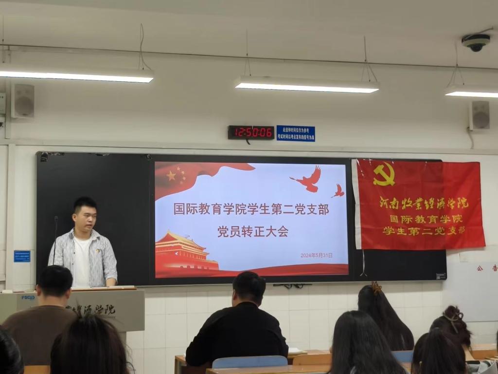 5月31日中午12点半,国际教育学院学生第二党支部在A114教室召开2024年上半年预备党员转正大会,此次会议由支部书记滑斌主持,二支部全体学生党员参加。