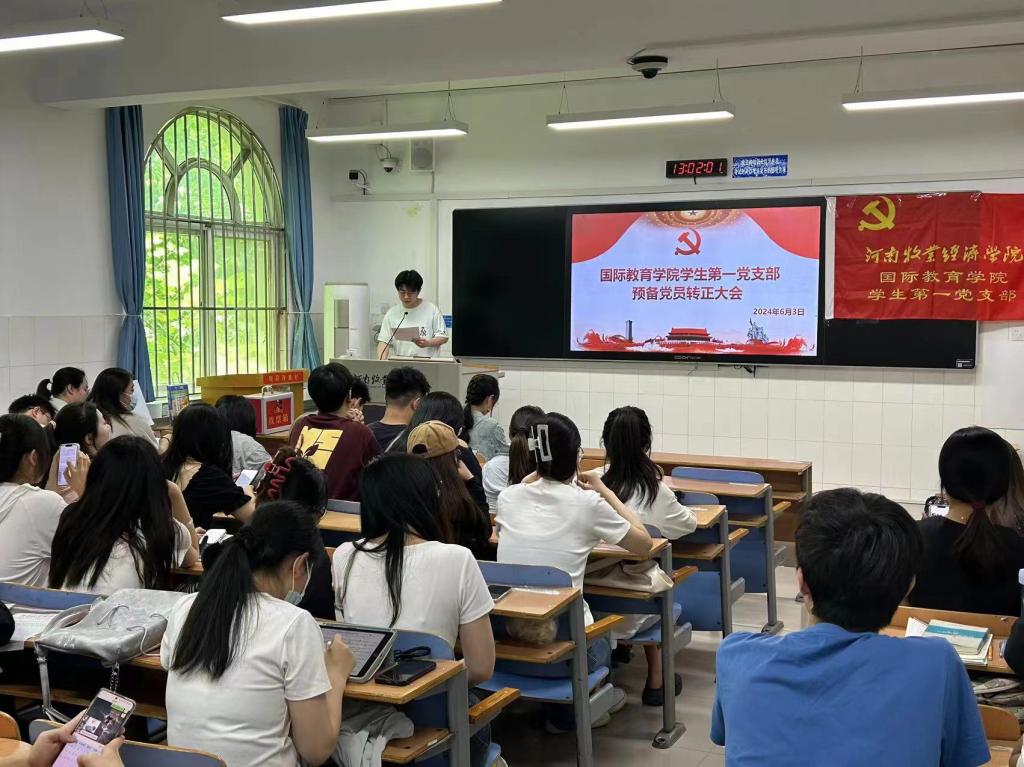 6月3日下午1点,beat365英国官方网站学生第一党支部在A115教室召开2024年上半年预备党员转正大会,此次会议由支部书记侯丁琳主待,一支部全体学生党员参加。