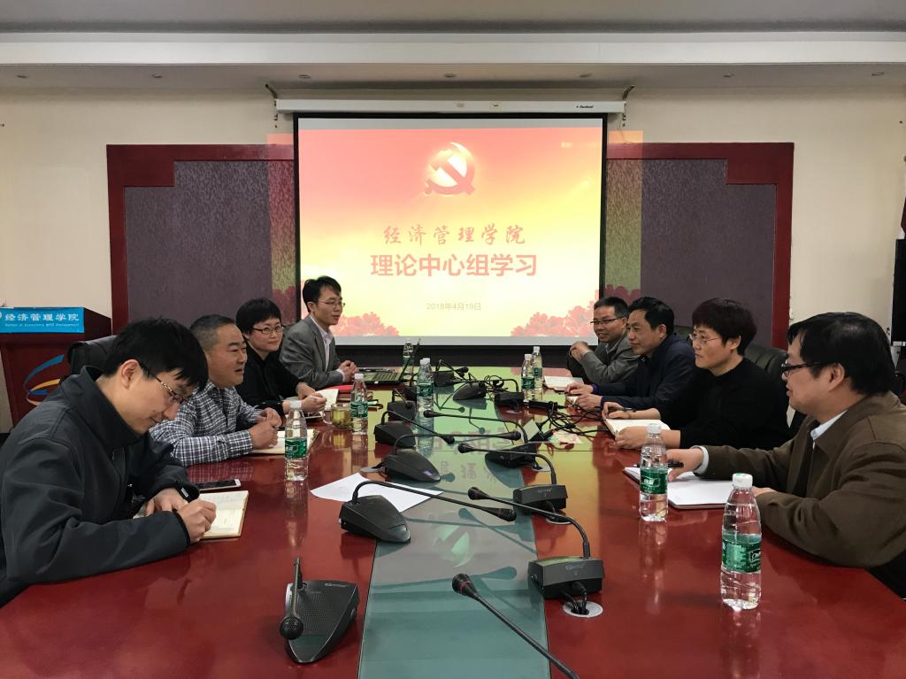 4月19日下午,350vip8888新葡的京集团在励学楼201会议室组织了理论中心组专题学习。学院领导班子成员、各教工党支部书记共同参加了学习,学院党委书记谢朝阳做了《深入学习和贯彻落实第八次党代会》的专题报告。
