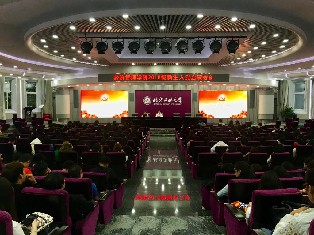 9月19日晚,350vip8888新葡的京集团在广学楼报告厅举行了2018级新生入党启蒙教育活动。学院党委书记谢朝阳、党委副书记赵洁、党务秘书卢云天及全体2018级新生参加了此次活动。活动由学院党委副书记赵洁主持。