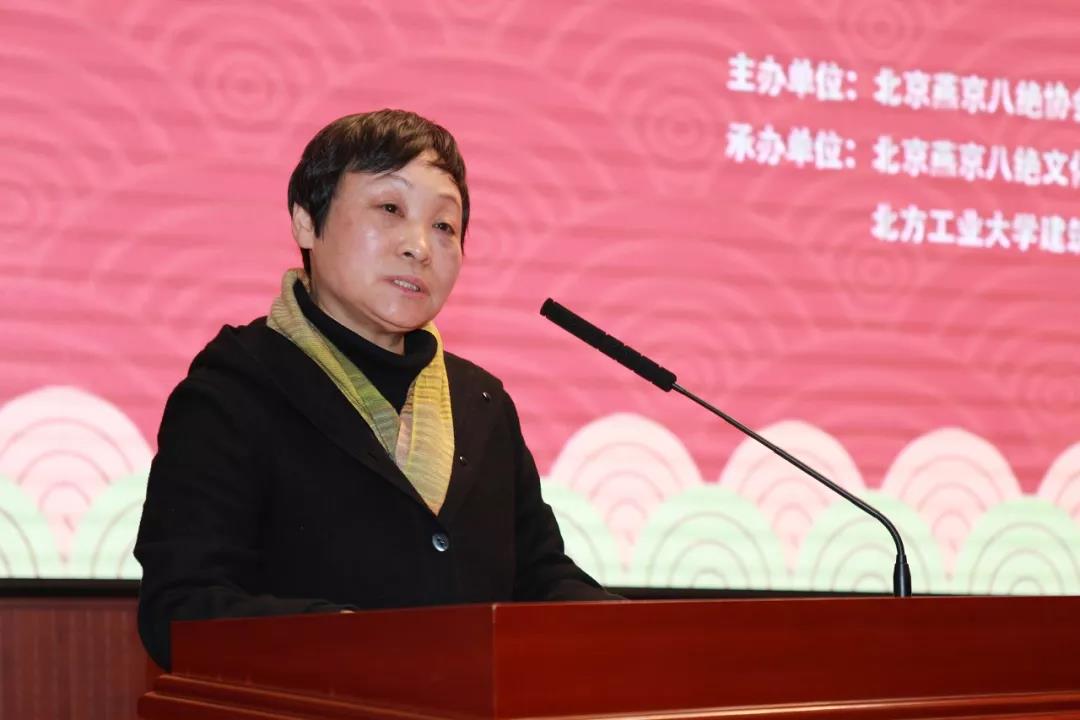 燕京八绝传承人万紫大师和北京燕京八绝协会常务副会长柏群老师分别致辞。万紫大师表示,十九大以来,在党和政府的政策指引和社会各界的积极推动下,燕京八绝事业得到了长足的发展。她希望未来所有的非遗传承人继续秉持着“敬业、精益、专注、创新”的工匠精神,努力创作具有传统工艺和北京特色的燕京八绝艺术精品。柏群副会长在致辞中表示,燕京八绝从2010年结缘西山永定河文化带,在石景山区的千年古刹承恩寺建立了燕京八绝的艺术馆。多年来,燕京八绝与北方工大都是好伙伴和好邻居,希望通过此次活动,搭建起校企合作、传承文化、传播文明的平台,为石景山区的文明创城事业、为首都四个中心建设,为中华文明的薪火相传,在各自的领域做出新的更大的贡献。