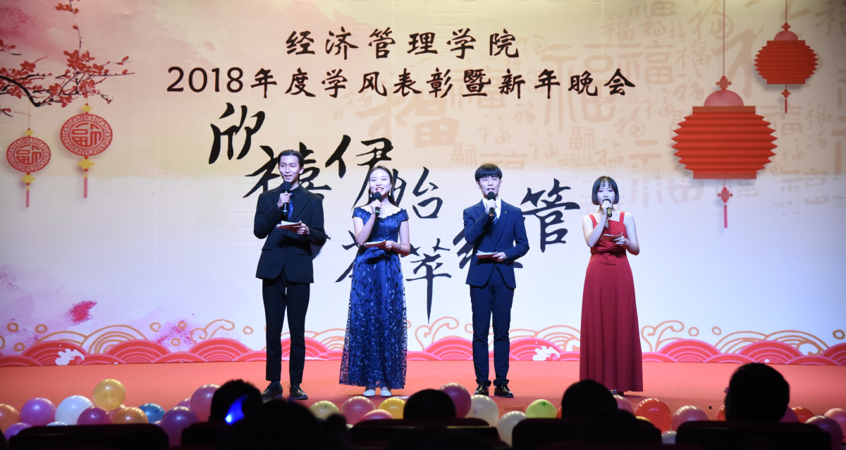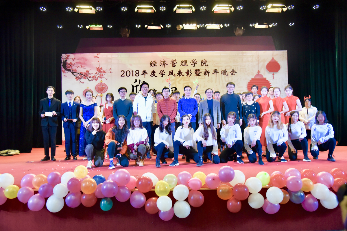 此次晚会围绕着同学们2018年的三个关键词——“坚持、转换、梦想”展开,大家通过自编自导自演的节目,回顾了2018年的过往,同时也对2019年充满了期许和展望。学院辅导员邓鑫、王昕宇以及励学楼管理员李海涛的献唱,更是将整场晚会推向了高潮,展现出了学院师生同乐贺新年的温馨画面。歌曲、舞蹈、小品等节目,也充分展现了经管人勤奋创新、阳光向上、敬业乐群、善于表达的气质品质。