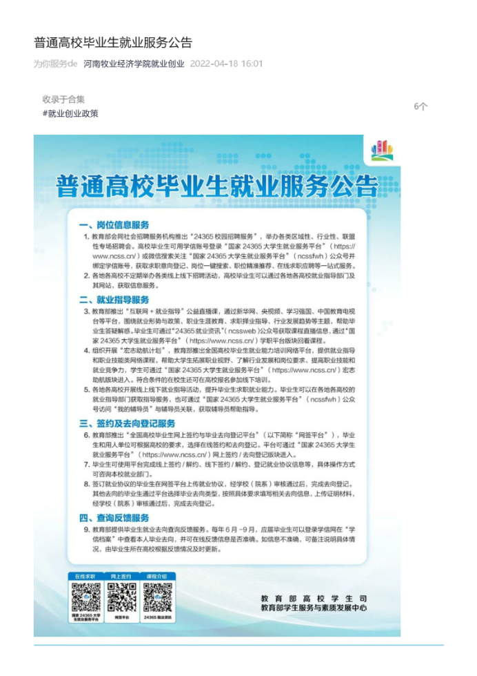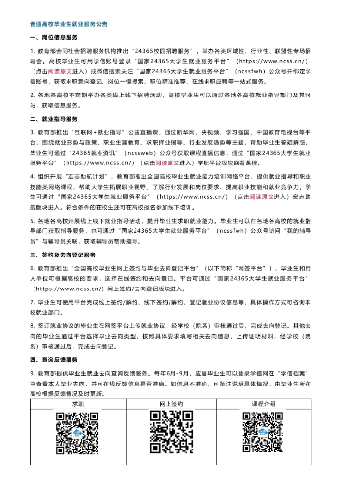 普通高校毕业生就业服务公告